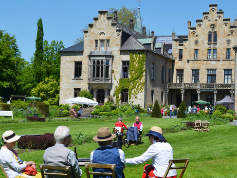 Duizenden rozen, vaste planten en zomerbloemen, Duitslands grootste en weelderigste moestuin, het betoverende boseiland, de wildernis, de kasteelparterre en nog veel meer omringen het imposante 19e-eeuwse kasteel op 60.000 vierkante meter.
