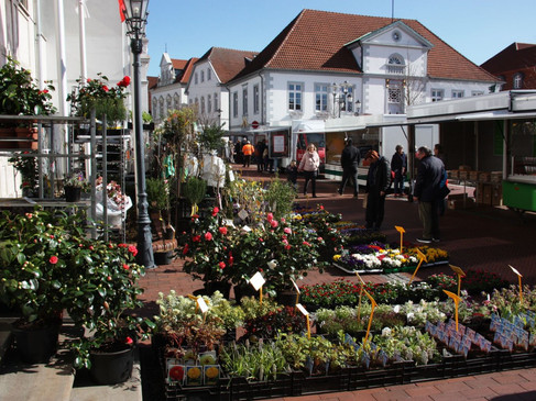 De weekmarkt vindt plaats in de Lange Straße en de Burgstraße.