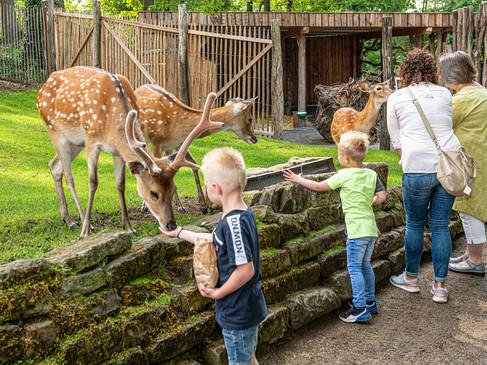 Door informatie over voeding leren de bezoekers meer over onder andere zeehonden, doodshoofdaapjes, wolven, vale gieren, stekelvarkens en chimpansees. Het grootste dier in de dierentuin is de Noord-Amerikaanse woudbizon, die het heraldisch dier weerspiegelt. Sinds 2012 kunt u bij de ingang de kudde samen met de pekari's op een verhoogd terrein zien.